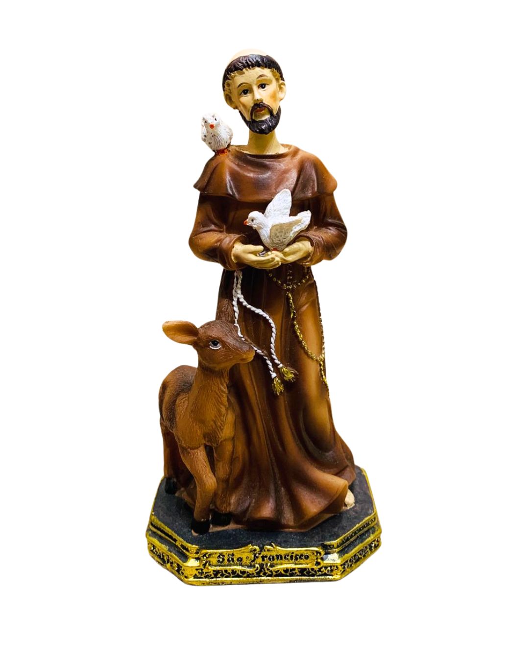 Esta imagem é confeccionada em resina de alta qualidade, com pintura artesanal e acabamento detalhado, destacando o hábito tradicional, a expressão serena e, quando presente, elementos como pássaros ou pequenos animais ao redor. Ideal para altares, oratórios e espaços de oração, ou como presente devocional, trazendo proteção, serenidade e bênçãos ao lar.