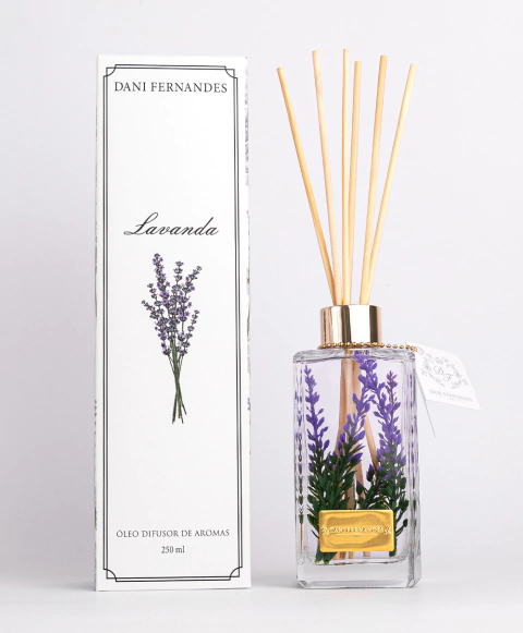 O Difusor de Aromas Lavanda Dani Fernandes combina funcionalidade e sofisticação para transformar o ambiente em um refúgio de tranquilidade e bem-estar. Com uma fragrância equilibrada que mistura a delicadeza da lavanda e a suavidade do alecrim, gerânio e cominho, seu perfume é perfeito para criar uma atmosfera relaxante.