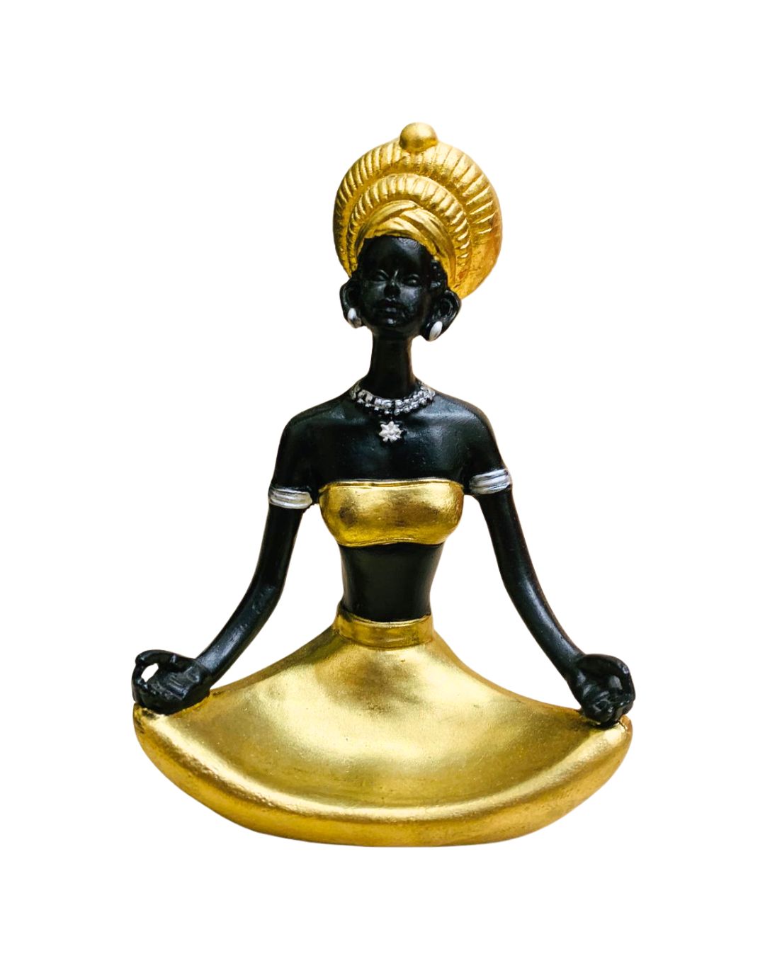 A Estátua Africana em Posição de Yoga representa a conexão entre corpo, mente e espírito, expressando serenidade, equilíbrio e força interior.