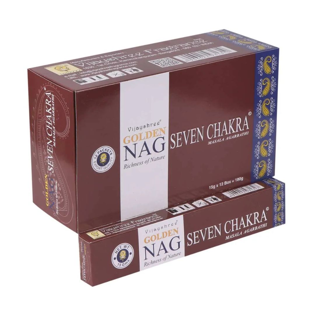 O Incenso Golden Nag Seven Chakra foi especialmente formulado para equilibrar e alinhar os sete chakras, promovendo harmonia entre corpo, mente e espírito.
