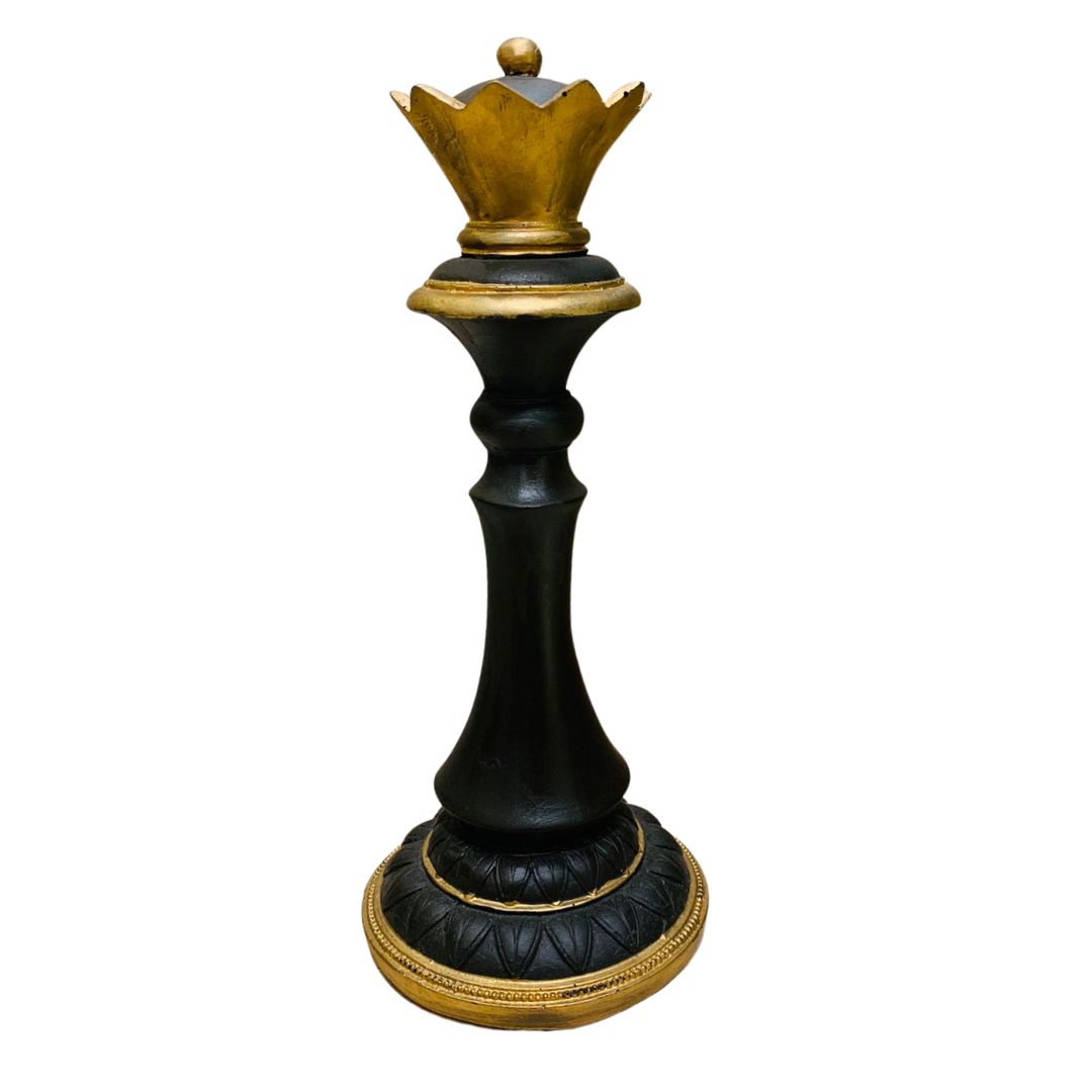 O Rei do Xadrez é o centro do jogo e representa liderança, autoridade e poder de decisão. Esta peça decorativa em preto com detalhes dourados traduz sabedoria, proteção e nobreza, sendo ideal para ambientes que valorizam força intelectual e elegância.