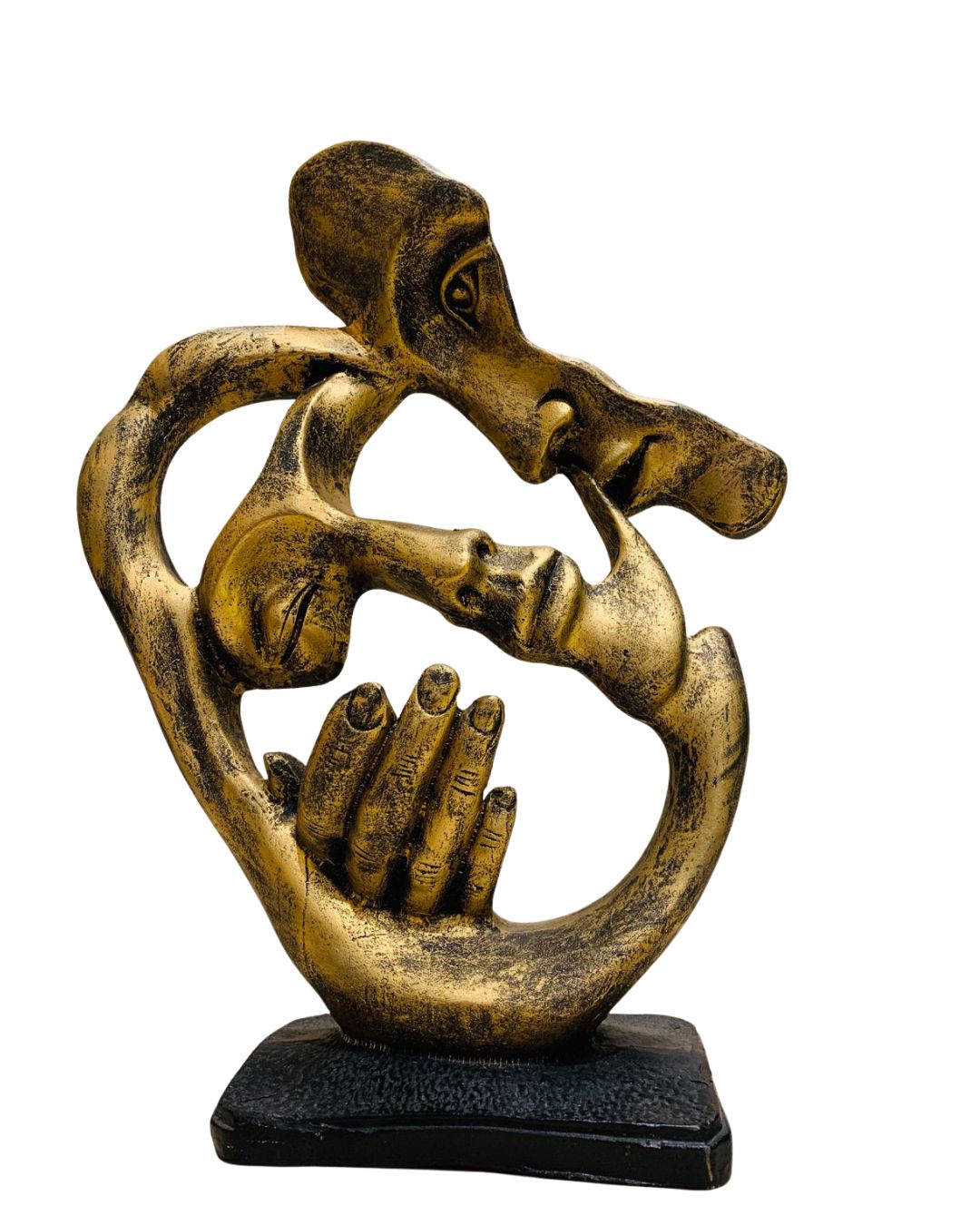 Escultura Face em tom dourado envelhecido, representando o encontro e a conexão entre duas pessoas. Uma peça artística e elegante que traz sofisticação e modernidade para qualquer ambiente.