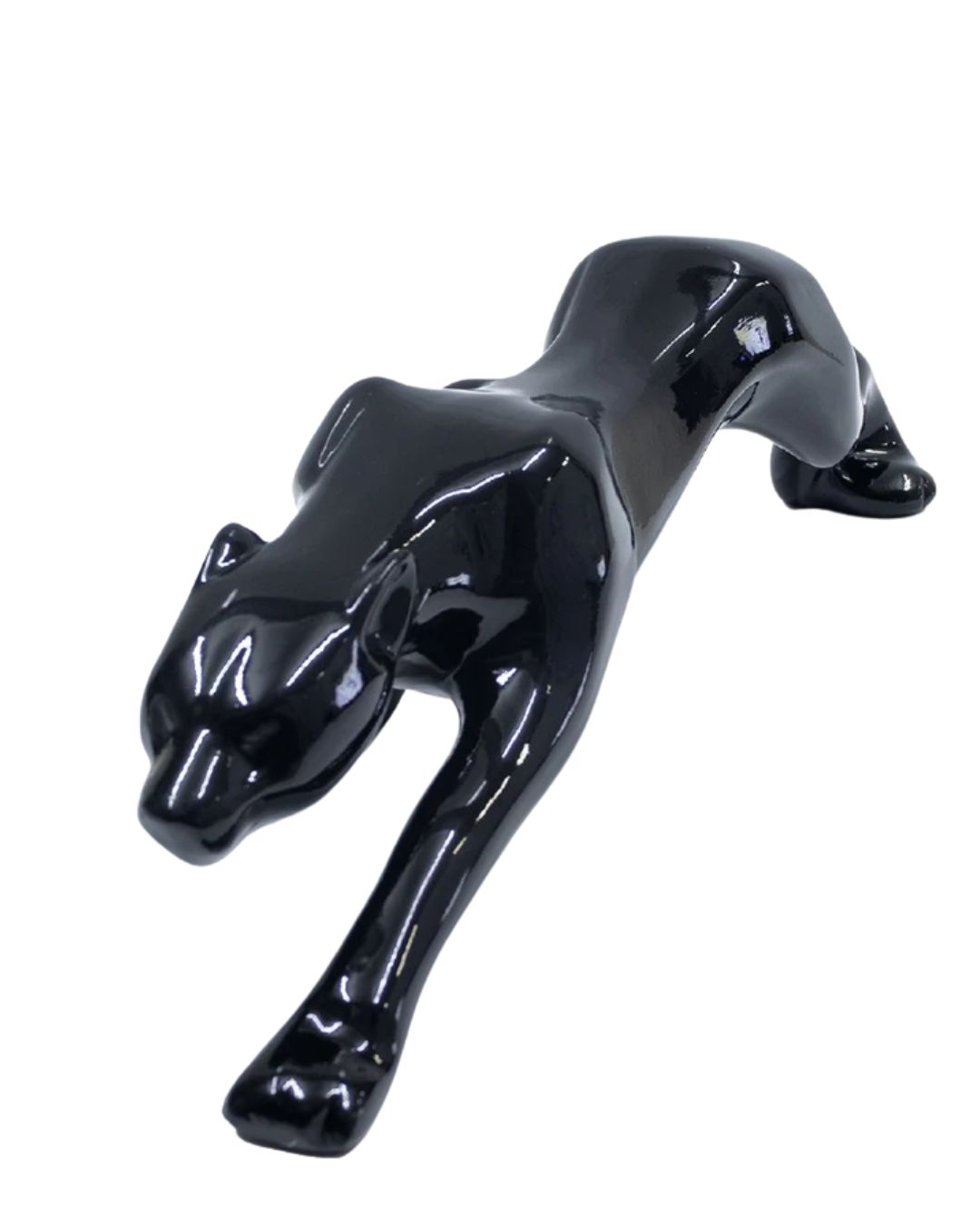 Esta impressionante escultura decorativa representa uma pantera negra em posição de ataque, esculpida em cerâmica com um design moderno e elegante. Sua pintura automotiva realça a beleza de seus detalhes e contrastes, tornando-a uma peça única e marcante para decorar qualquer ambiente com estilo e personalidade.